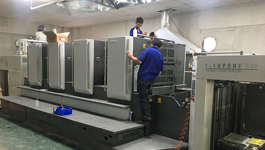 公司擁有2臺日本小森全開四色印刷機,UV上光過油機,全自動燙金模切機,瓦楞機、覆膜機、絲網機、全自動高速糊盒機等印刷后道設備。擁有高素質的設計人員和從事印刷行業十多年的技術隊伍。生產各類彩盒、彩箱、標簽、商標、畫冊。